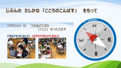 さらに,心のコンパスのお話もしました。今,大人の人でさえ,いろいろな考えがある中で,悩ましいことがあります。たくさんの人のの意見を参考にしながらも,心のコンパスを使って自分の進む道を決めるってステキなことですね。と伝えました。