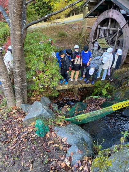 所内をめぐりながら、昨日のオリエンテーリングでは発見できなかった山の家の自然を五感で感じることができるように、グループで取り組んでいます。
