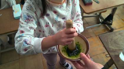 3月1日の学活で栄養教諭の先生に来ていただき、やさいのひみつについて学習しました。小松菜をすりおろしてみたり、給食で食べる野菜の量を実際の野菜で確認したりしました。また同じ週の道徳では、「いのちをいただく〜みいちゃんがお肉になる日〜」という本を読んで、他の動物や植物から命をいただいて自分たちは生きていることについても学習しました。普段何気なく食べている食事ですが、食への感謝を忘れず、好き嫌いせずに食べていけるといいですね。
