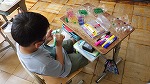 2年生の図画工作科では、透明な入れ物や容器などに、カラーペンで色を付けることで、光を通したときに美しい色や形が浮かび上がります。お天気の良い日に、みんなの作品が並ぶと、とてもカラフルできれいな場所が出来上がりそうです。