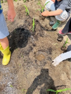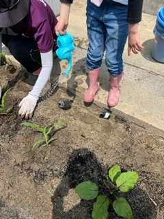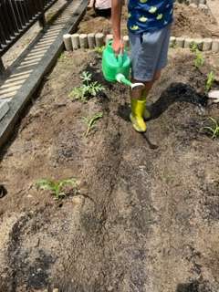 根っこぬきや水やりにも慣れてきました。泥んこになりながらも楽しんで活動しています。