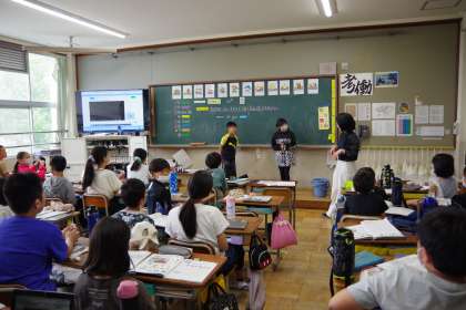 外国語科の授業で、「What do you want ?」のやりとりをしています。「When is your birthday? 」とつなげて誕生日にほしいものを聞き合っています。外国語を通して友達のことを知るきっかけにもなり、豊かなかかわりにつながります。