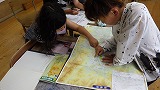 川やお寺、赤い鳥居などの名前を知るために、京都市の地図や絵地図を使って、名前を調べました。地図でも、すべての名前がきちんと載っているわけではないこともわかりました。みんなで一つの地図を使って学び合っています。