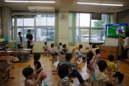 2日(金)の午後に、1年生が昨年度お世話になった保育園や幼稚園の先生方に来校いただき、授業の様子を見ていただきました。かけ橋プロジェクトの一つの取組として今年度から行いました。1年生の子どもたちもとてもはりきっていました。