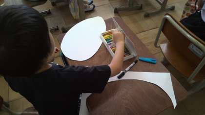チョキチョキ、ワクワク、たまごから何が生まれてくるのか楽しみです。