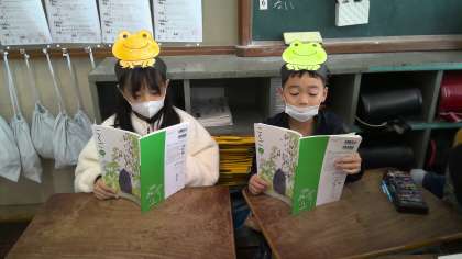 国語科「お手紙」の音読劇に向けて準備をしています。
