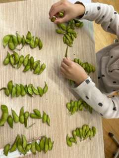 今日はえだまめ(丹波黒豆?)を、えにっきで記録し、収穫、分配をしました。