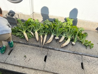 冬休みの間、ぐんぐん成長した野菜を収穫しました。