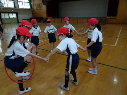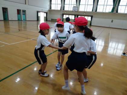 はじめは体育の学習のきまりを確認した後、2人組やグループで活動しました。