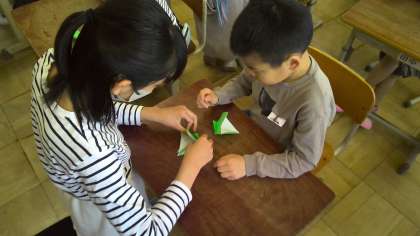 鶴の折り方を説明するだけでなく、どんな理由で折るのか、どんな気持ちを込めて折ってほしいのかについても伝えることができました。