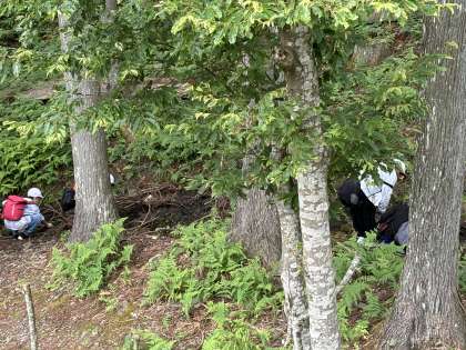 午後の活動の一つ目はスコアオリエンテーリングです。山の家の敷地内のポイントごとのクイズに答えながら、施設内の自然や建物などに目を向けます。子どもたちは、日常ではあまり経験できないような自然を満喫しています。