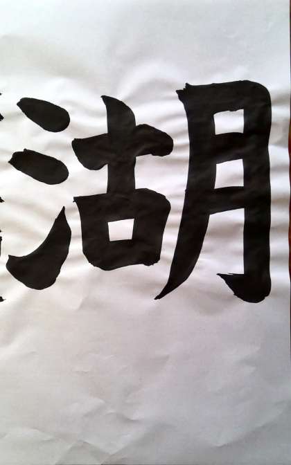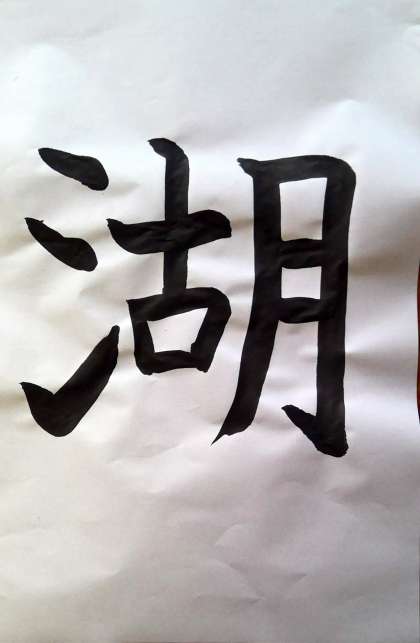 三つの部分の組み立て方に気をつけて「湖」という字を書きました。集中しながら一画一画丁寧に書くことができました。