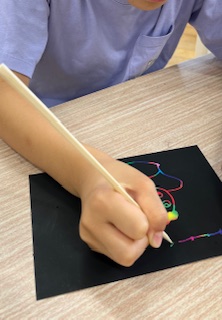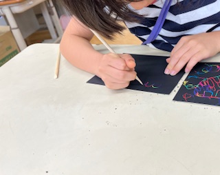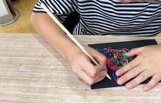 図工科の時間に、筆圧強く書くめあてで、ひっかきアートをしました。