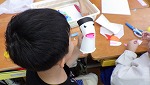 図画工作科の学習では、紙コップに切り込みを入れて、パクパクする仕組みを作りました。パクパクする様子を見て、「人を作ってみたい」「動物(生き物)にしてみたい」という子どもたちの声から、材料を考えて、いろいろなパーツや飾りを付けました。