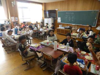 片付けは、3・4年生が中心になって食器や食缶も給食室に届けてくれました。1・2年生は教室の簡単掃除をして、みんなで協力できた素敵な給食になりました。
