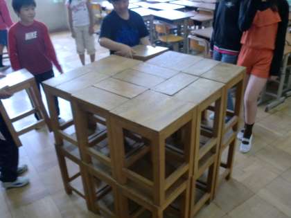 1立法メートルは実際にどれくらいの大きさになるのかを,イスを重ねて学習しました。