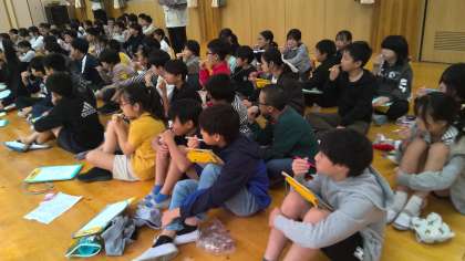 本日5年生は、学校歯科医の先生と歯科衛生士さんのお世話になり、正しい歯磨きの仕方を学習しました。虫歯ができる仕組みや、虫歯を防ぐ方法について、パペットを使いながら楽しく教えていただきました。子どもたちは実際に歯ブラシを使って奥歯や前歯の裏を丁寧に磨いたり、歯茎をマッサージしたりしていました。今晩の歯磨きの様子を是非見ていただければと思います。