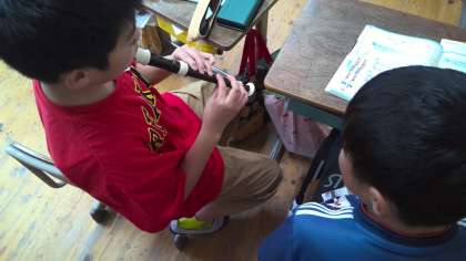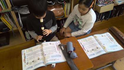 音楽科では、リコーダーの練習を頑張っています。今取り組んでいるのは「メリーさんのひつじ」です。友だちと一緒に協力しながら練習をしています。自分の音だけでなく、友だちの音を聞きながらふいていると、重なる音のきれいさに、うっとりなる瞬間があります。お家でもぜひ聴いてあげてください。