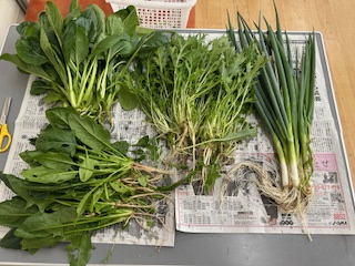 ホウレンソウ、コマツナ、京水菜もおいしそうに収穫できました。