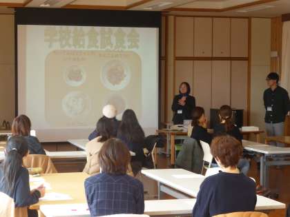 はじめに、栄養教諭から学校給食と食育について説明をしました。和(なごみ)献立など京都市独自の取り組みなどについても保護者の皆さんに知ってもらいました。