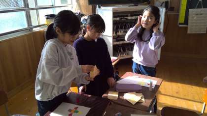 自分のイメージするカードを作るために、ほしい色のほしい形を、英語を使ってゲットしていきます!