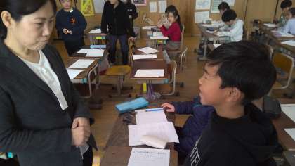 子どもたちは、中国に国語教育がない(中国では中国語と韓国語を学習する)ことを聞いて驚いたり、似ている・同じ漢字でも意味がちがうことを知って不思議がっていたりしました。日本の文化との違いに楽しみながら触れた子どもたちです。「おうちの人に言ってみよう!」とプリントを持ち帰っています。