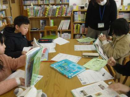 百科事典を使って「はてなクイズ」や「情報カード」に記入に取り組み、充実した時間を過ごすことができました。