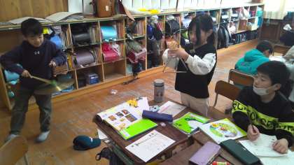 理科の学習をしている教室から、様々な楽器の音が聞こえてきます!なぜでしょう?「音のせいしつ」を学習しているからです!