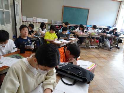 この時間は、自分でする学習を自分で決め、自分のペースで進めていく時間です。先週の金曜日に、2週間の予定を立てました。「6年生の新しい漢字を50個覚えよう」「人体について調べ学習をしよう」「理科の電気の学習をしよう」と、目標はそれぞれですが、みんな10分間集中して取り組むことができました。この小さな積み重ねが、大きな学びや力にかわっていってほしいと思います。