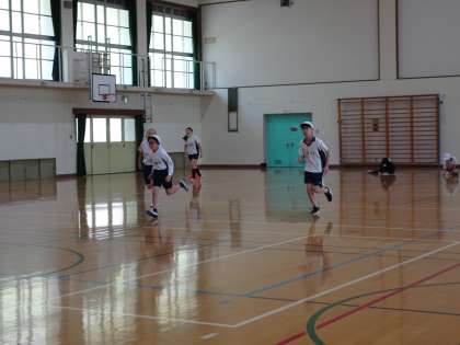 6年生は新体力テストのシャトルランに挑戦しました。毎年取り組んでいるので、活動の進め方にもずいぶん慣れています。
