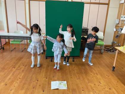 竹のはっぱになりきって揺れながら音読をしているグループ
