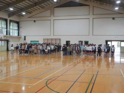今年度の全校合唱曲を高学年全員で集まって練習しました。