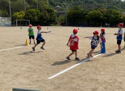 体育ではリレーの学習をしています。