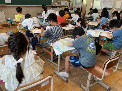 漢字テストで満点を取るために、漢字学習に取り組んだり、今算数で学習している「1けたのわり算の筆算」をマスターするために応用問題にチャレンジしたり、47都道府県を覚えるために、都道府県の位置と県名をセットで覚えたりと、各々が目標に向かって工夫して学んでいます。
