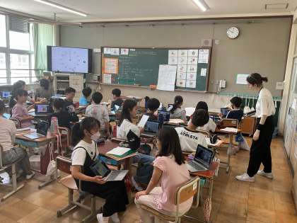 外国語の学習で、友だちに誕生日や誕生日に欲しい物をたずねる言い方を練習しました。お互いに相手にたずねながら、会話を続けていきました。