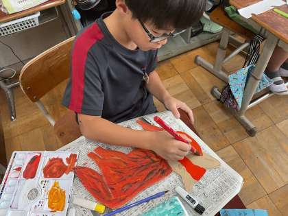 電動のこぎりを使った板に色を塗っていきました。仕上げにニスを塗って、ホワイトボードを自分の作品に合った形に切って、はりつけたら完成です!すてきな良い作品ができあがりそうです。