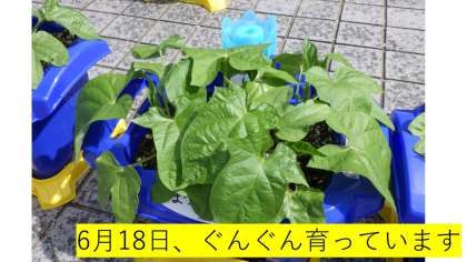 毎朝、水やりをしている子どもたちも、ぐんぐん成長するアサガオを楽しみに登校しているようにも思います。ぐんぐん成長するアサガオの生命力に、みんな驚かされています。