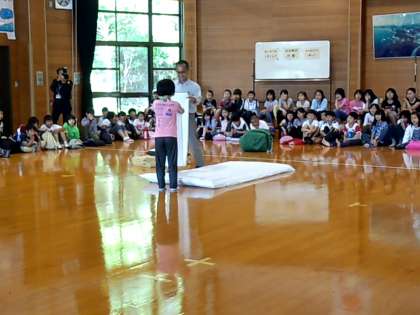 みさきの家の先生から,泡式トイレの使い方,寝具(布団・シーツ・毛布・寝袋)の敷き方やたたみ方を教わりました。