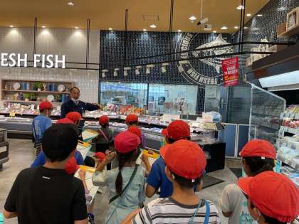水曜日は社会科の学習で地域のスーパーマーケット「デイリーカナートイズミヤ桂坂店」へ見学に行きました。