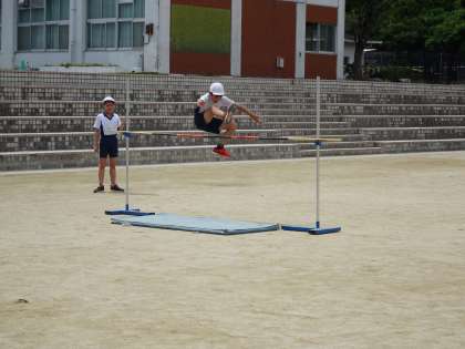 体育の学習で走り高跳びをしています。4年生の時1度学習していましたが、久しぶりの内容だったので、とび方を丁寧に確認するところから始めました。学習を重ねていくにつれて、とび方にも慣れ、今は高さに挑戦しています。自分の跳べる高さから少しずつ少しずつ上げていくことで記録がのびています。跳べたときにはハイタッチをするほど一本一本大切に跳んでいます。