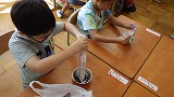 夏休みに集めたアサガオの花を使って、色水遊びをしました。