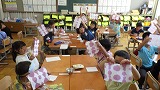 色水は、半紙にしみこませて、いろいろな模様づくりを楽しみました。