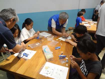 京都の優れたモノづくりの伝統を学びに生き方探究館にでかけました。殿堂工房では、モノづくり企業創業者の生き方や情熱にふれました。工房学習では、LDEと抵抗器を使って7色に光るLED点灯装置を作りました。普段、学校では学ぶことのできない貴重な体験でした。