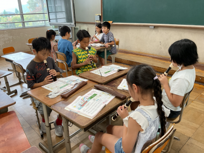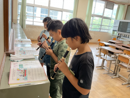 旋律の特徴を見つけた子どもたちは、その特徴に合わせたリコーダーの吹き方を練習しました。タンギングや息の使い方を工夫しながら、うまく表現できる吹き方を見つけていました。班で協力しながら、何度も練習する姿が素敵でした。
