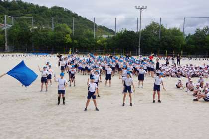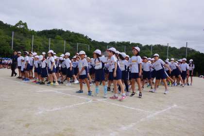 1回目の全校練習のことを思い出しながら、子どもたちは前回よりもスムーズに動くことができていました。