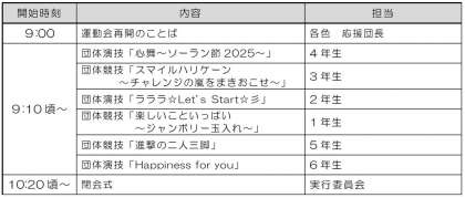 ※ 23日(木)は、競技・演技後、授業・給食あり5時間授業です。