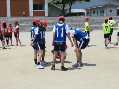 タイムを縮めるためにチームで話し合いそれぞれ工夫しながら学習しています。