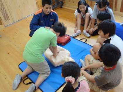 西京消防署の方に来て頂き,救急救命の学習を行いました。