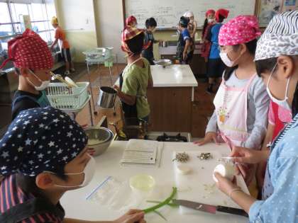 家庭科の調理実習で、ご飯とお味噌汁を作りました。