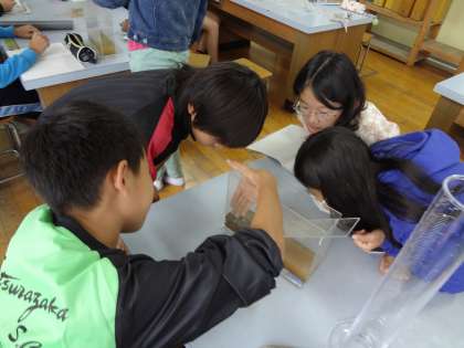 地層はどのようにしてできるかについて予想し,その予想にもとづいて実験してみました。大きく4つに分かれ,